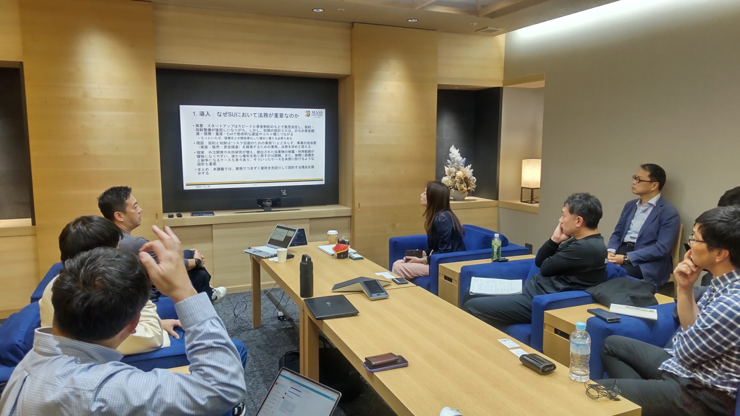 第2回の勉強会は「特許・知財戦略」をテーマに、弁理士法人白坂 白坂 一 氏、MASSパートナーズ法律事務所 溝田 宗司 氏の2名をお招きし、講演いただきました。